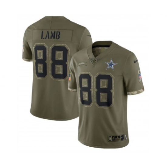 >Men's Dallas Cowboys #88 CeeDee Lamb 2022 Olive Salute To Service Limited Stitched Jersey