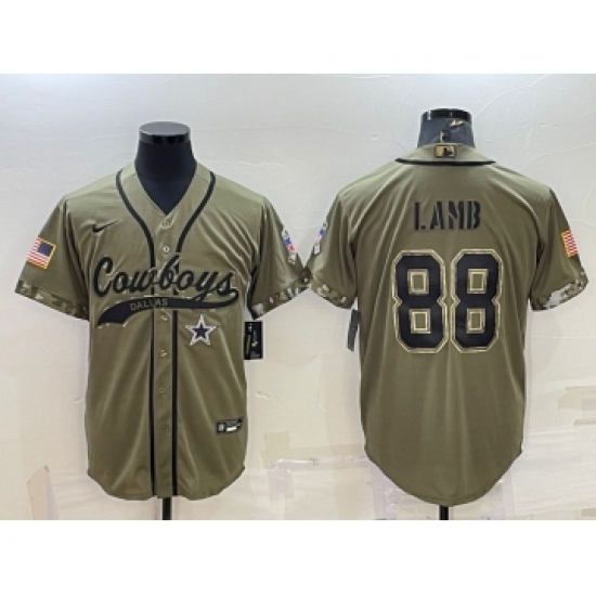 Men's Dallas Cowboys #88 CeeDee Lamb 2022 Olive Salute to Service Cool Base Stitched