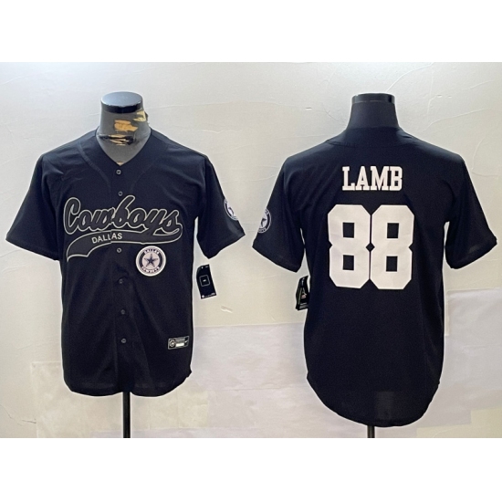 Men's Dallas Cowboys #88 CeeDee Lamb Black With Cool Base Stitched Baseball Jersey