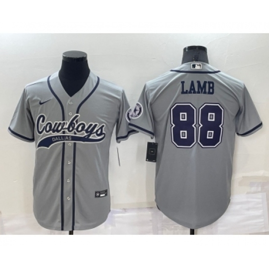 Men's Dallas Cowboys #88 CeeDee Lamb Grey Stitched Cool Base Nike Baseball Jersey