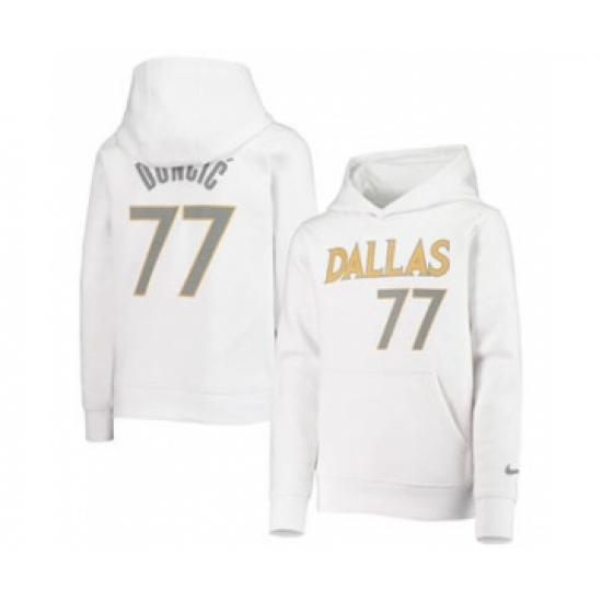 >Men's Dallas Mavericks #77 Luka Doncic 2021 White Pullover Basketball Hoodie
