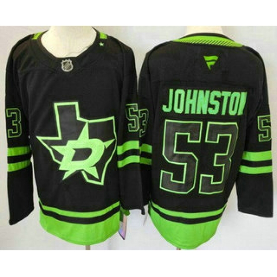 >Men's Dallas Stars #53 Wyatt Johnston Black Alternate Authentic Jersey