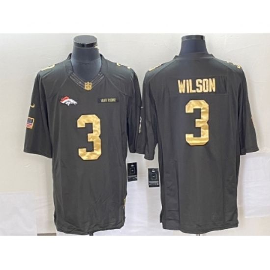 Men's Denver Broncos #3 Russell Wilson Green Gold Salute To Service Stitched Nike Limited Jersey