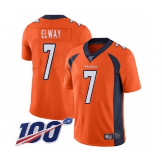 Men's Denver Broncos #7 John Elway Orange Team Color Vapor Untouchable Limited Player 100th Season Football Jersey
