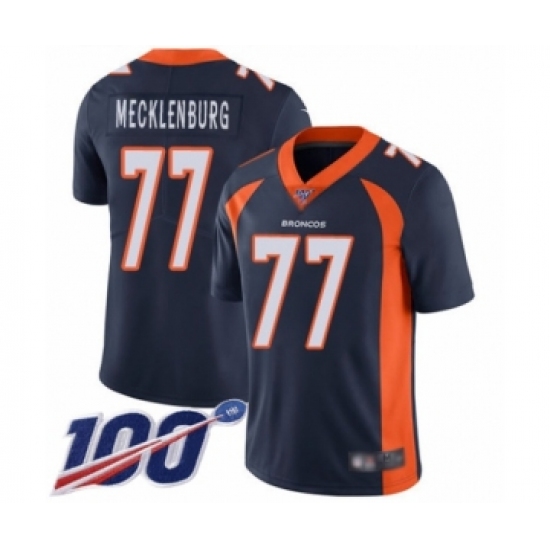 >Men's Denver Broncos #77 Karl Mecklenburg Navy Blue Alternate Vapor Untouchable Limited Player 100th Season Football Jersey
