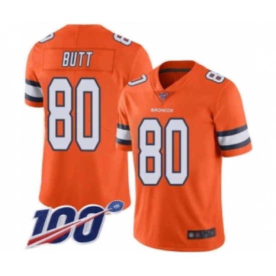 Men's Denver Broncos #80 Jake Butt Limited Orange Rush Vapor Untouchable 100th Season Football Jersey