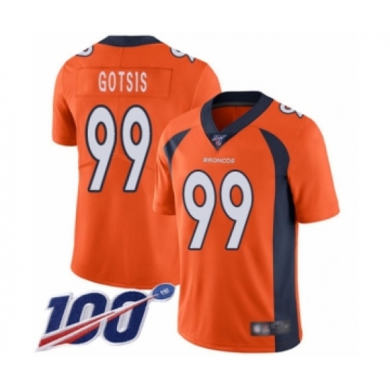 Men's Denver Broncos #99 Adam Gotsis Orange Team Color Vapor Untouchable Limited Player 100th Season Football Jersey