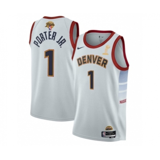 Men's Denver Nuggets #1 Michael Porter Jr. White 2023 Finals Champions Icon Edition Stitched Basketball Jersey