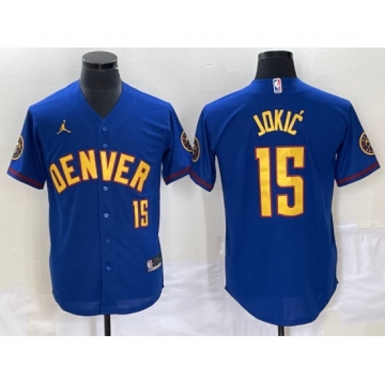 Men's Denver Nuggets #15 Nikola Jokic Blue Stitched Baseball Jersey
