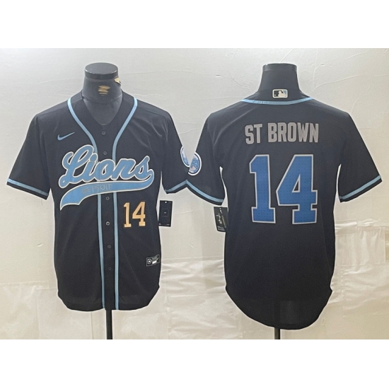 Men's Detroit Lions #14 Amon-Ra St. Brown Number Black Cool Base Stitched Baseball Jersey
