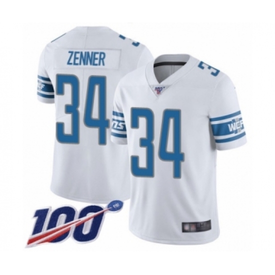 >Men's Detroit Lions #34 Zach Zenner White Vapor Untouchable Limited Player 100th Season Football Jersey