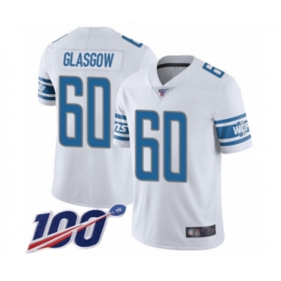 >Men's Detroit Lions #60 Graham Glasgow White Vapor Untouchable Limited Player 100th Season Football Jersey