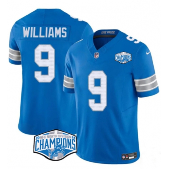 Men's Detroit Lions #9 Jameson Williams Blue 2024 NFC North Champions F.U.S.E. Vapor Limited Stitched Jersey