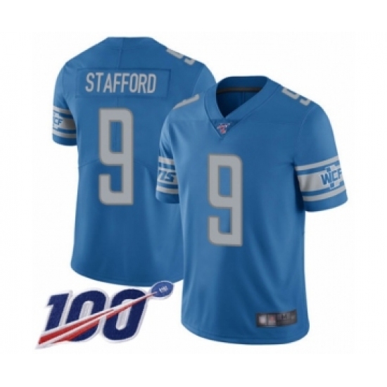 Men's Detroit Lions #9 Matthew Stafford Blue Team Color Vapor Untouchable Limited Player 100th Season Football Jersey