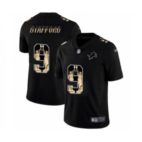 Men's Detroit Lions #9 Matthew Stafford Limited Black Statue of Liberty Football Jersey