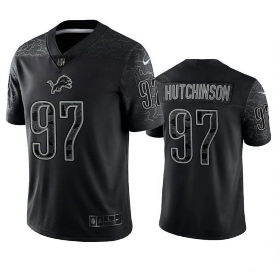 Men's Detroit Lions #97 Aidan Hutchinson Black Reflective Football Stitched Jersey