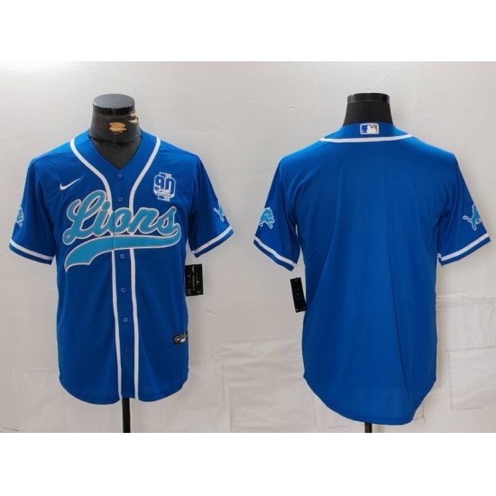 Men's Detroit Lions Blank Blue With 90th Cool Base Stitched Baseball Jersey