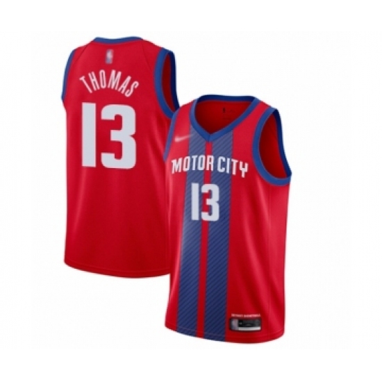>Men's Detroit Pistons #13 Khyri Thomas Swingman Red Basketball Jersey - 2019 20 City Edition