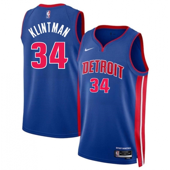 Men's Detroit Pistons #34 Bobi Klintman Blue 2024 Icon Edition Stitched Jersey