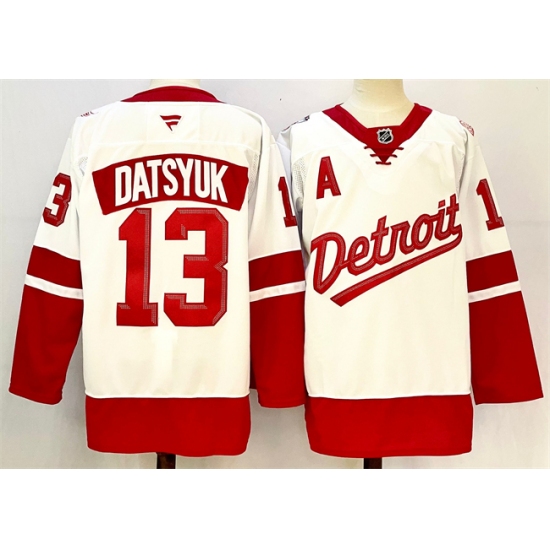Men's Detroit Red Wings #13 Pavel Datsyuk White Red 2024-25 With A Stitched Jersey