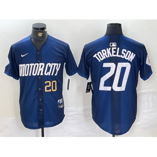 >Mens Detroit Tigers #20 Spencer Torkelson Number 2024 Navy City Connect Cool Base Limited Stitched Jersey