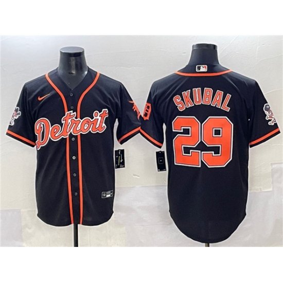 >Men's Detroit Tigers #29 Tarik Skubal Black With Cool Base Stitched Baseball Jersey