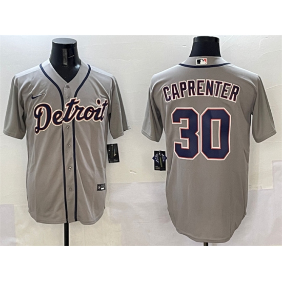 >Men's Detroit Tigers #30 Kerry Carpenter Grey Cool Base Stitched Baseball Jersey