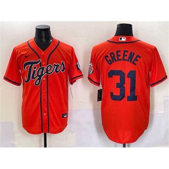 Men's Detroit Tigers #31 Riley Greene Orange With Cool Base Stitched Baseball Jersey
