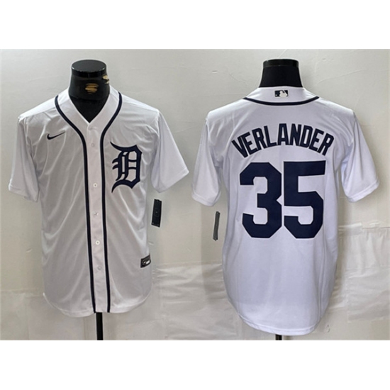Men's Detroit Tigers #35 Justin Verlander White Cool Base Stitched Baseball Jersey