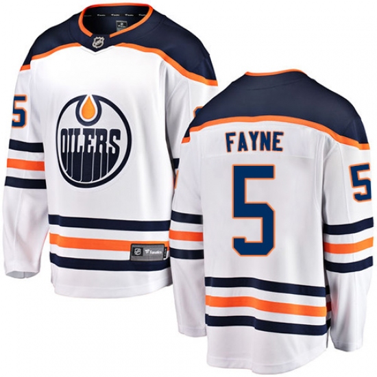 Men's Edmonton Oilers #5 Mark Fayne Fanatics Branded White Away Breakaway NHL Jersey