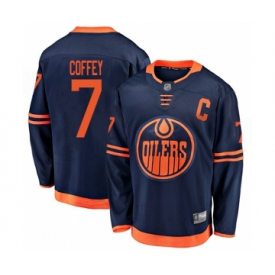 Men's Edmonton Oilers #7 Paul Coffey Authentic Navy Blue Alternate Fanatics Branded Breakaway Hockey Jersey