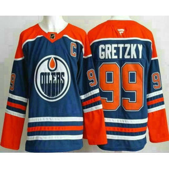 Men's Edmonton Oilers #99 Wayne Gretzky Navy 2024-25 C Stitched Jersey