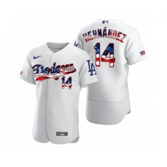 Men's Enrique Hernandez #14 Los Angeles Dodgers White 2020 Stars & Stripes 4th of July Jersey