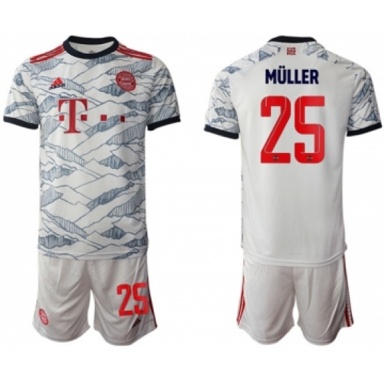 >Men's FC Bayern München #25 Thomas Müller White Away Soccer Jersey With Shorts