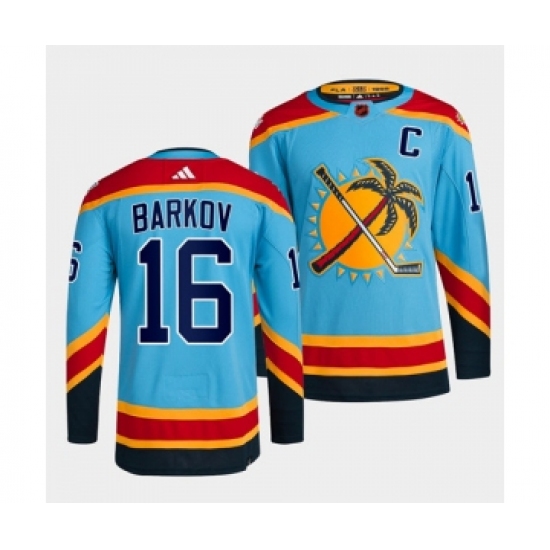 Men's Florida Panthers #16 Aleksander Barkov Blue 2022 Reverse Retro Stitched Jersey