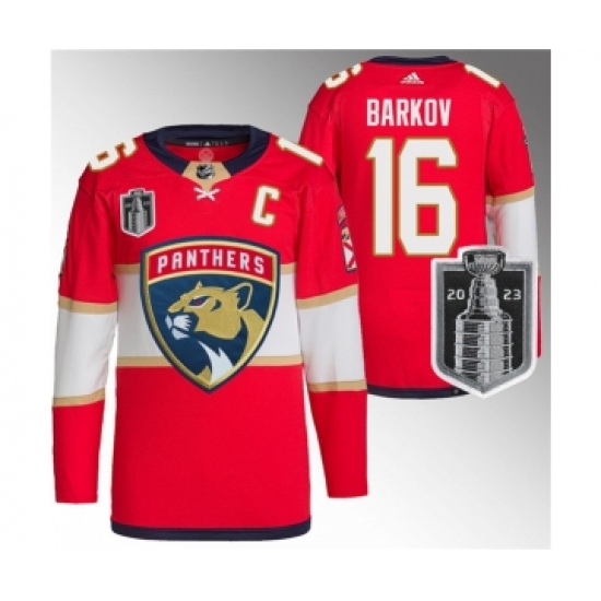 Men's Florida Panthers #16 Aleksander Barkov Red 2023 Stanley Cup Final Stitched Jersey