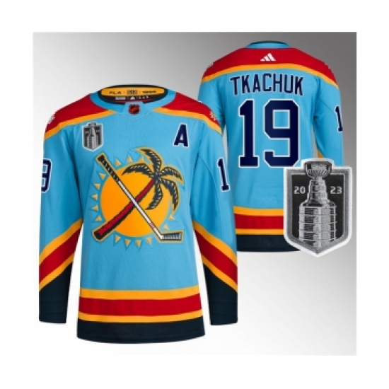 Men's Florida Panthers #19 Matthew Tkachuk Blue 2023 Stanley Cup Final Reverse Retro Stitched Jersey