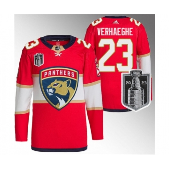 >Men's Florida Panthers #23 Carter Verhaeghe Red 2023 Stanley Cup Final Stitched Jersey