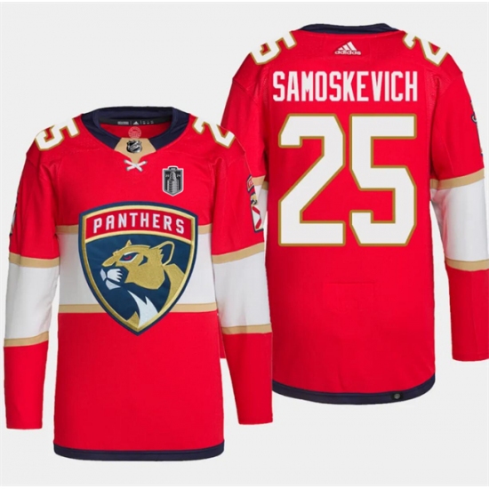 Men's Florida Panthers #25 Mackie Samoskevich Red 2024 Stanley Cup Final Stitched Jersey