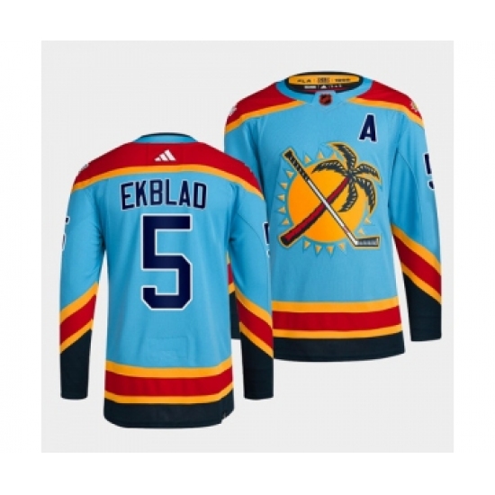 Men's Florida Panthers #5 Aaron Ekblad Blue 2022 Reverse Retro Stitched Jersey