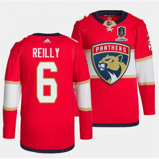Men's Florida Panthers #6 Mike Reilly Red Home 2024 Stanley Cup Champions Stitched Jersey