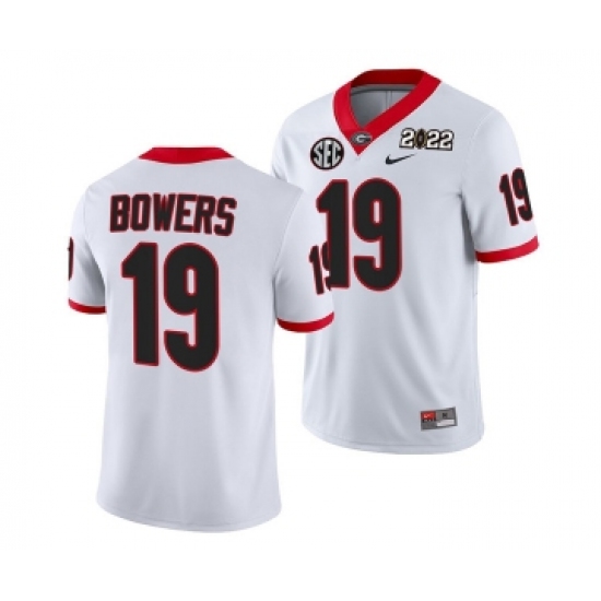 Men’s Georgia Bulldogs #19 Brock Bowers 2022 Patch White College Football Stitched Jersey