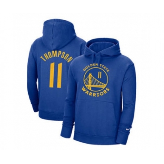 Men's Golden State Warriors #11 Klay Thompson 2021 Blue Pullover Basketball Hoodie