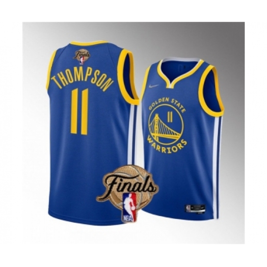 >Men's Golden State Warriors #11 Klay Thompson Royal 2022 Finals Stitched Basketball Jersey