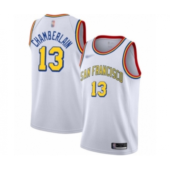Men's Golden State Warriors #13 Wilt Chamberlain Authentic White Hardwood Classics Basketball Jersey - San Francisco Classic Edition