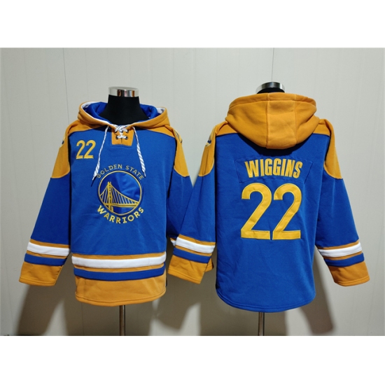 Men's Golden State Warriors #22 Andrew Wiggins Blue Yellow Lace-Up Pullover Hoodie