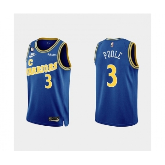 Men's Golden State Warriors #3 Jordan Poole 2022-23 Blue With No.6 Patch Stitched Basketball Jersey