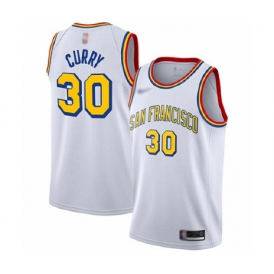 >Men's Golden State Warriors #30 Stephen Curry Authentic White Hardwood Classics Basketball Jersey - San Francisco Classic Edition