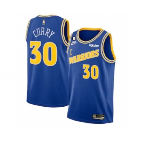Men's Golden State Warriors #30 Stephen Curry Royal With No.6 Patch Stitched Jersey