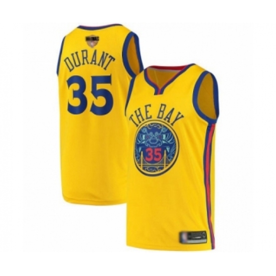 Men's Golden State Warriors #35 Kevin Durant Swingman Gold 2019 Basketball Finals Bound Basketball Jersey - City Edition